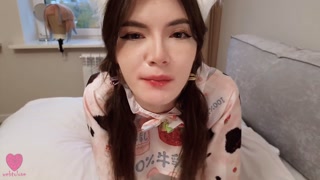 Cute neko girl was fucked in all her tight holes to have an orgasm and filled her ass with hot cum