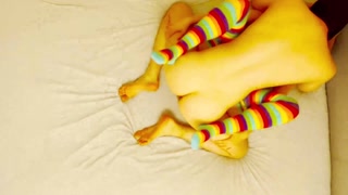 Cute teen girl in rainbow Pantyhose tights