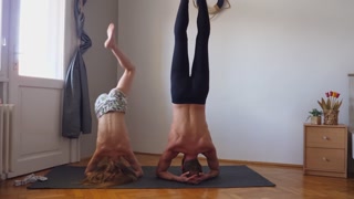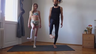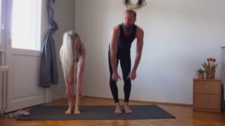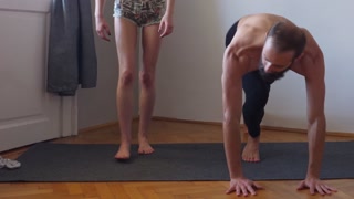 Workout yoga exercise together for the first time