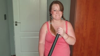 Big chubby whore vacuuming her fat pussy