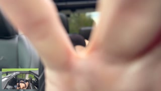 Husband drives car while wife fucks and gets creampie by friend in back seat / Sloppy seconds / 4K