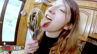 Food and sex orgy with Melany Furie getting all her holes fucked hard in the kitchen