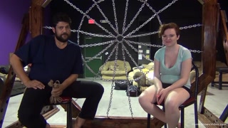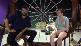 Busty redhead gets tied up with rope and teased