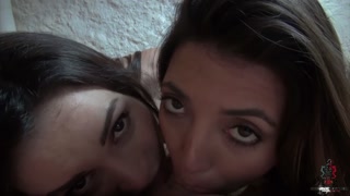 Valentina Bianco & Frida Sante suck cock for an American tourist