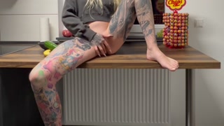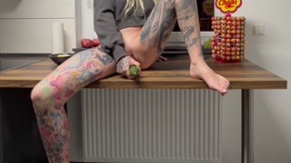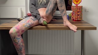 Size totally underestimated, I satisfy myself with a big cucumber for the first time