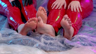 Lesbian Foot Fetish With Honey, Positive FemDom and Kind Funny 4k Beautiful Art video, tasty feet