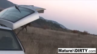 Blonde mature sucks and fucks outdoors