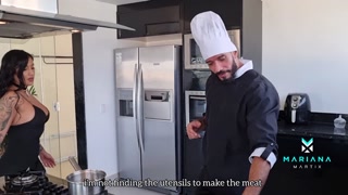 Cuckold woman receives a call from her husband when she is fucking with the chef - Mariana Martix