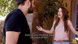 DADDY4K. Beauty and BFs rich dad have amazing sex in the living room