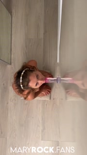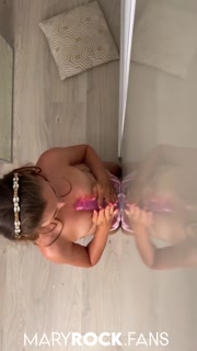 The girl attached a rubber dick to the wall and got an orgasm from it