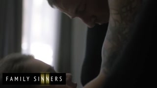 FAMILY SINNERS - Horny Stepbro Sticks His Tongue In His Stepsis's Pussy Making Her Eyes Roll Back