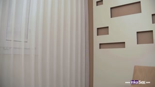 Tender pink Spanish redhead gets fucked as a gift by stranger