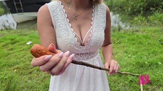 Romantic sex by the fire with a hot wife by the lake. Polish milf