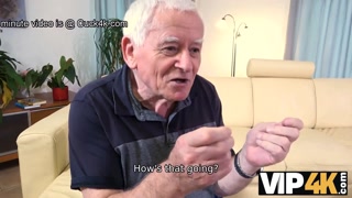 VIP4K. Grey-haired old impotent man ordered a sex robot for busty hungry wife