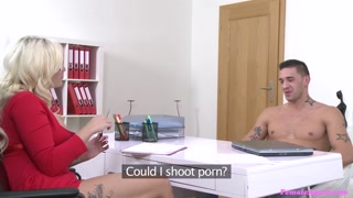 Horny Blonde MILF in Glasses fucks untill he SPUNKS on her Big Tits - Female Agent