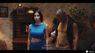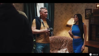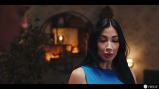 French Brunette with Fake Enhanced Huge Boobs Gets Her Nipples Sucked while Frozen in Time