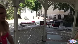 Little Taylor is playing with her brunette friend outdoors as lesbiasn