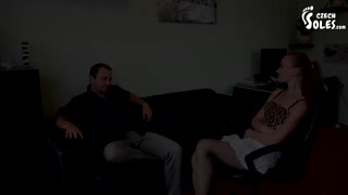 Seduction in high heels and fishnet stockings (foot worship, pantyhose feet, nylons, foot teasing)