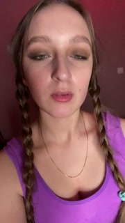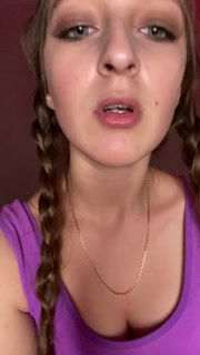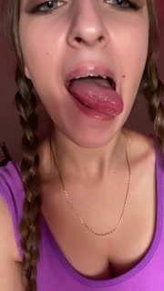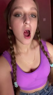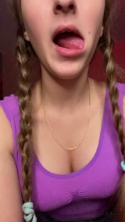 Giantess looks to tiny man before eating