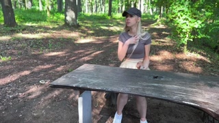 Risky pussy fuck with dildo and squirting outdoors