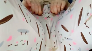 She takes off her pajamas and her pussy peeks out
