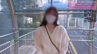 A fair-skinned beautiful girl exposes her tits on the Ferris wheel and gives a blowjob! Creampie