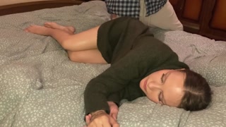 Overexcited stepdaughter quieted down and got a dick in her wet pussy.