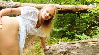Married MILF lagged behind the tourist group and was fucked right on the forest path.