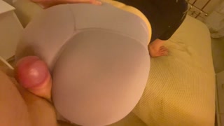 CFNM Assjob off Blonde British MILF in Tight Yoga Pants - Cum on Ass