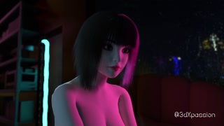 Nexus 3 Neon dreams. Cyberpunk sex with busty brunette. Extreme deepthroat