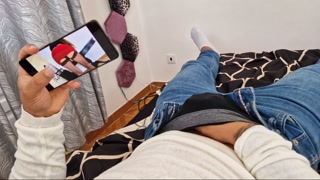 My stepmom catches me masturbating and she helps me cum in her tits