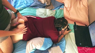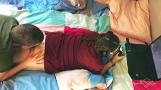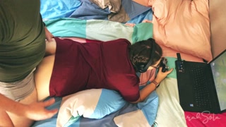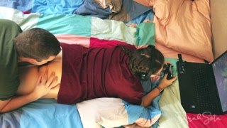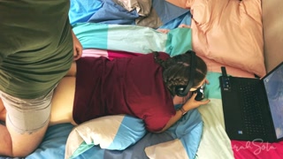 ass cumshot for a chubby gamer girl after prone bone fuck