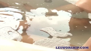 Asian Kimberly Chi Walks in on Her Roommate Bathing and Joins in