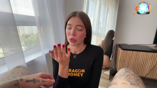 Babe SWALLOWS and Plays with Cum / She Sucks and CHOKES