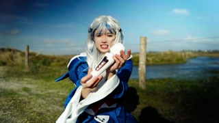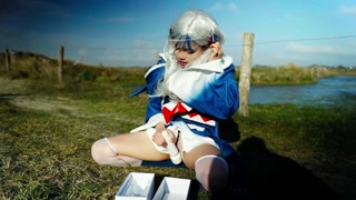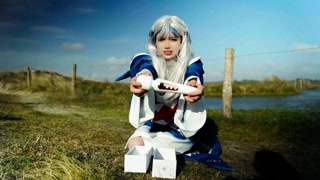 Gura cosplayer squirt on the beach her new vibro