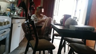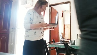 Housewife without panties shows her pussy to the technical service and spies on her having hard sex