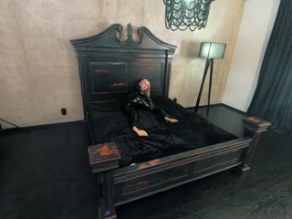 Rubber black latex catsuit backstage video, thigh high boots and shiny fetish clothes