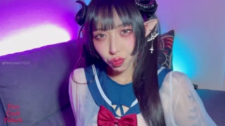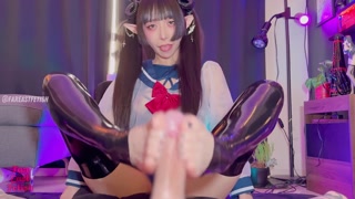 Succubus Melu seduces slave with hands and feet