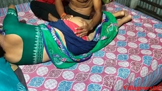 Desi indian Village made fuck green saree in owner house