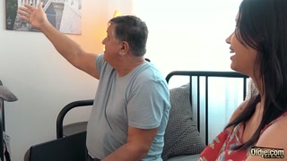 Girlfriend swallows cum from old man after hot steamy sex