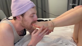 Foot Worship and a Footjob Reward from Petite Brunette Mistress