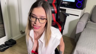 A secretary cheats on her husband with her boss. Hard fucking blowjob and cum on the face