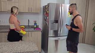 My boss's son seduces me and his father surprises us fucking in the kitchen Kourtney Love