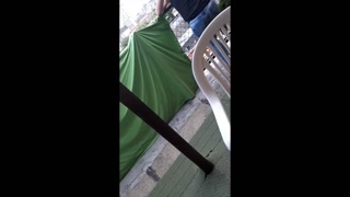 How we make video Desperate Pee in Jeans on balcony in centrum City