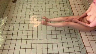 A couple having sex in a hot spring! Licking the penis thickly with sweat and copulating