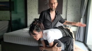 18yo Asian schoolgirl gets spanked and fingered in her school uniform - Real Sex with Baebi Hel