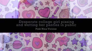 Desperate college girl pissing and wetting her panties in public