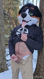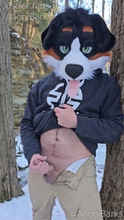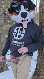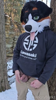 Furry @AngryBarks jerking off in the woods. Leaks cum then shoots hard 💦