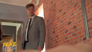 Hostel Estate Agent with huge natural tits discovers small blonde