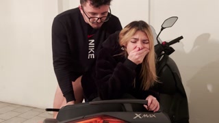 I fuck a teen on the XMAX in the garage, while my wife is in the house. Dirty dialogues